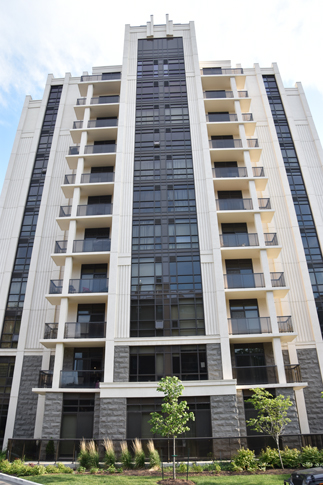 We worked together with New Horizon Development Group on the City Square 2 Condominiums, located in the heart of the Durand District of Downtown Hamilton, Ontario. The 11 storey condo offers 15 unit types, ranging from 1 to 2 bedroom, and from 479 sq. ft. to 1,260 sq. ft. Each unit features an open concept kitchen, large living space and bedroom suite, and a balcony with a view of the city skyline. The building's other facilities include a wrap-around landscaped terrace, a ground level fitness room, 2 levels of underground parking, surface level visitor parking, and easily accessible bicycle storage. The condo also employs energy efficient geo-thermal heating and cooling technology. From the first week of sales, 75% of the City Square 2 units were sold, demonstrating the success of this contemporary residential project.