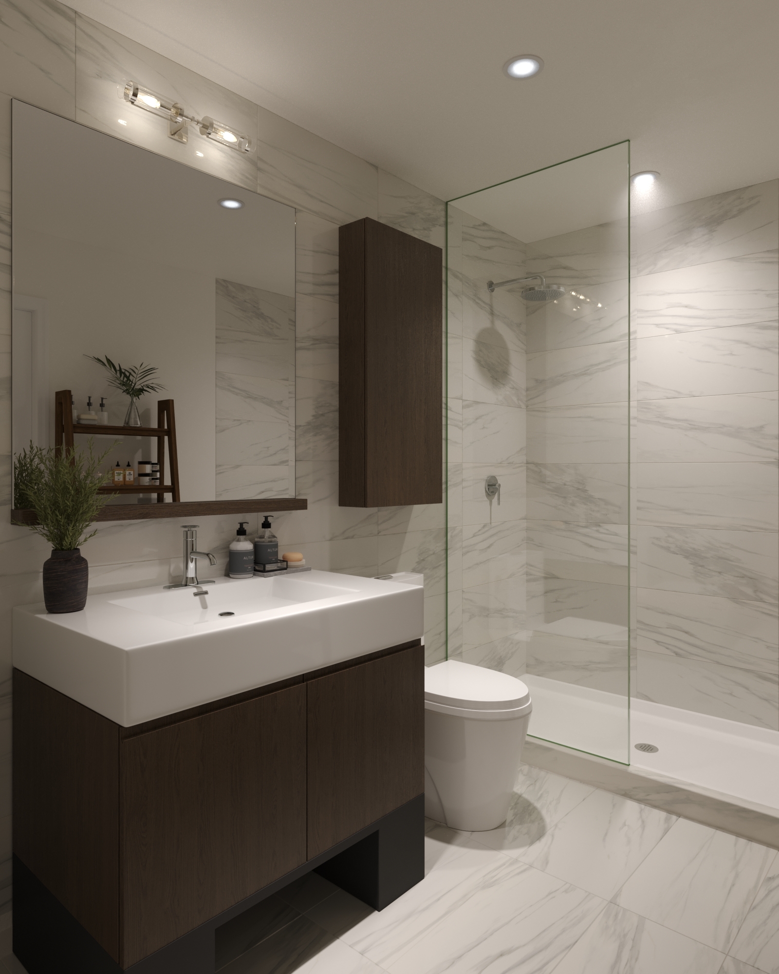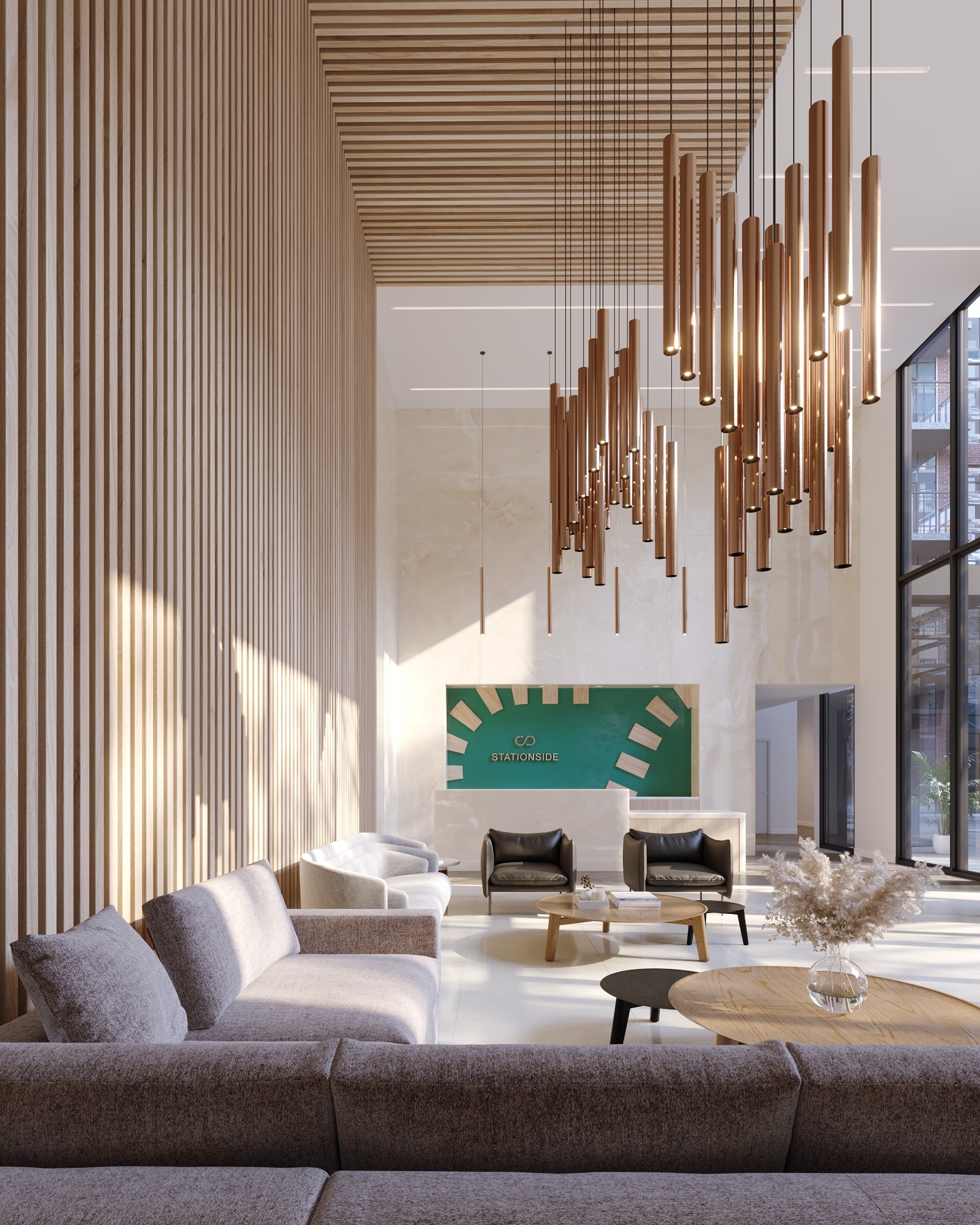 Stationside has been designed to meet high efficiency requirements and provides a wide range of amenities, both outdoors and indoors. A podium roof-top amenity area offers residents and their guests a place to relax or barbeque. Other outdoor amenities include a dog run and park-scape. Indoor amenities offer a gym, yoga studio, event space and co-working area.