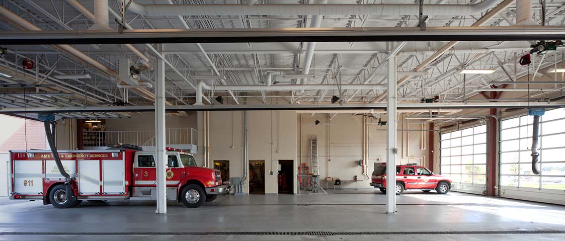 The new Fire and Emergency Services Headquarters is approximately 28,263 sq. ft. incorporating a multi-truck apparatus room with support space for Fire Fighters as well as an administrative office component and Emergency Response Centre for 911 calls. In the event of a major disaster, the Ajax Fire Station and Headquarters will be used as the main Emergency Operation Centre for the area.