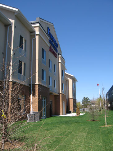 The Marriott Fairfield Inn & Suites Hotel Sudbury is one of the newest additions to Sudbury's hospitality industry. The hotel contains 81 rooms on 3 floors, offering either one king or two queen beds, and the option of such features as pull-out or rollaway sofabed, mini fridge, microwave oven and whirlpool. All rooms are equipped with air conditioning, alarm clock, coffee maker, iron and ironing board, luxury bedding, CD player, colour television, cable, table and chairs. Accessible rooms are also available, with grab bars in the bathroom, bathtub seat, toilet seat at wheelchair height and roll-in shower. The building also features a convenient location and such amenities as exercise room, swimming pool, whirlpool, wired and wireless internet, business centre and 538 sq. ft. meeting room.