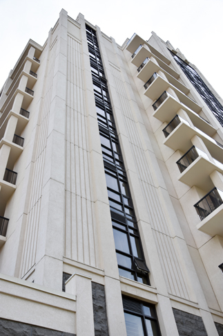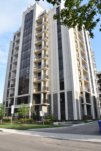 We worked together with New Horizon Development Group on the City Square 2 Condominiums, located in the heart of the Durand District of Downtown Hamilton, Ontario. The 11 storey condo offers 15 unit types, ranging from 1 to 2 bedroom, and from 479 sq. ft. to 1,260 sq. ft. Each unit features an open concept kitchen, large living space and bedroom suite, and a balcony with a view of the city skyline. The building's other facilities include a wrap-around landscaped terrace, a ground level fitness room, 2 levels of underground parking, surface level visitor parking, and easily accessible bicycle storage. The condo also employs energy efficient geo-thermal heating and cooling technology. From the first week of sales, 75% of the City Square 2 units were sold, demonstrating the success of this contemporary residential project.