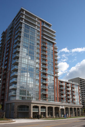 This innovative residential condominium boasts 21 storeys and two levels of below grade parking. It features residential units of various sizes, including one, two and three bedroom suites.
