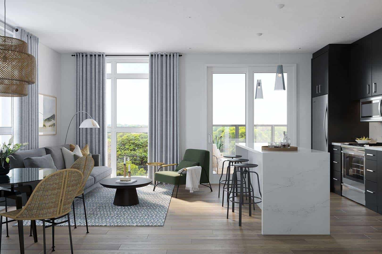 The buildings are each designed with smart home integration, used throughout the common spaces and suites. A variety of amenity spaces were integrated into the site design to provide homeowners with a comfortable work life balance. Some of these amenities include fitness/yoga rooms, social lounges, party rooms and rooftop terraces.