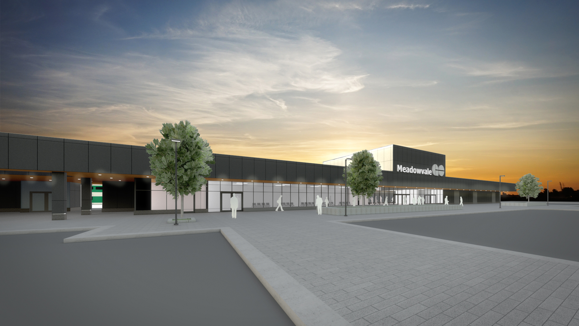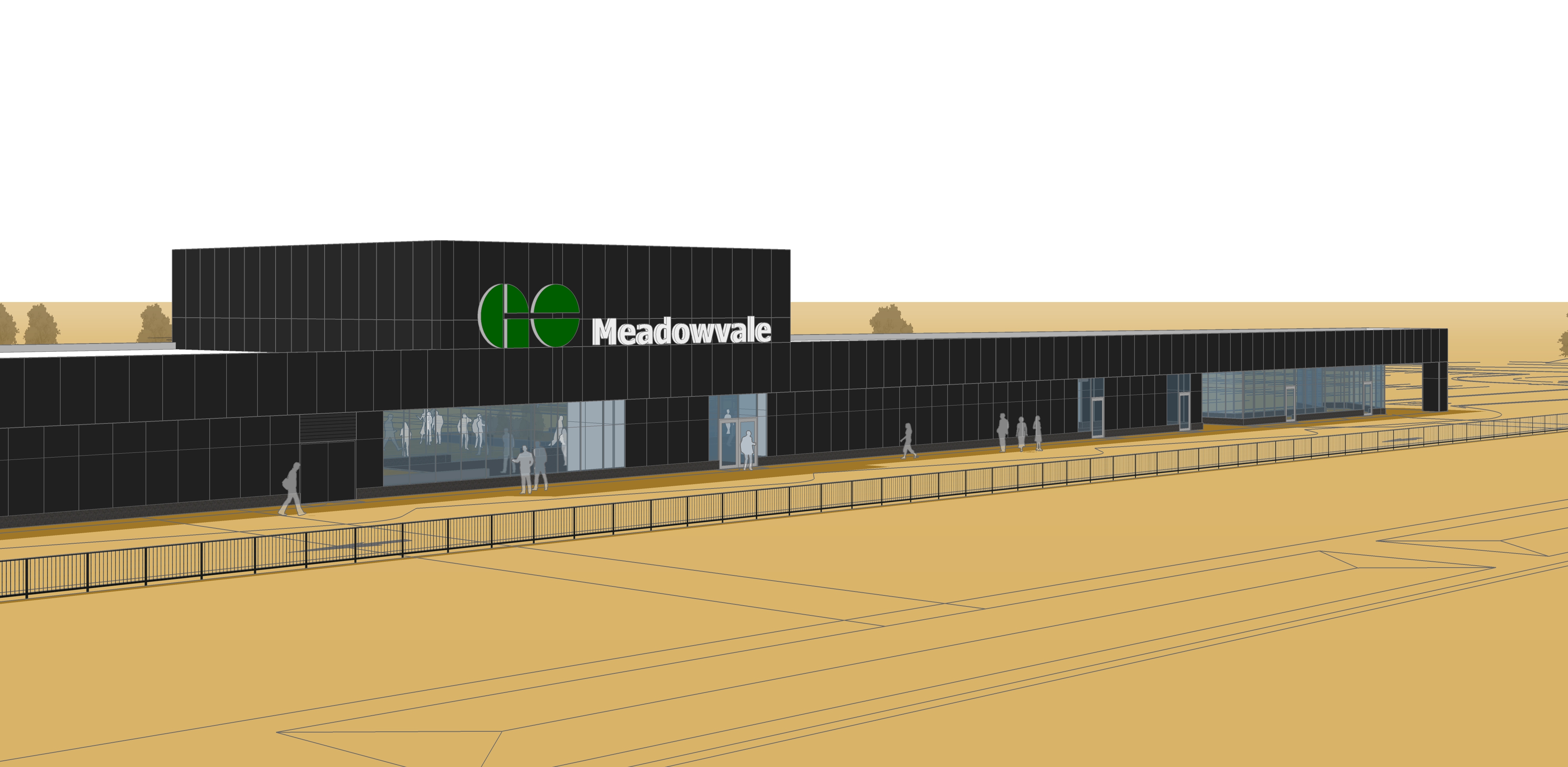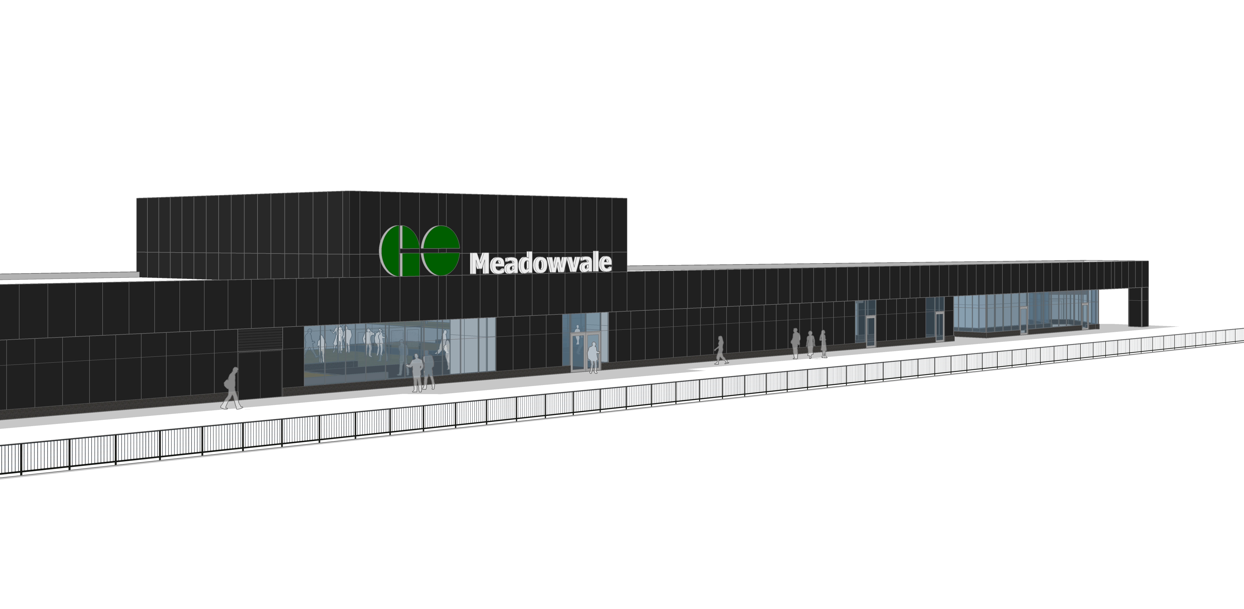This design forms a prototype for the ideal station layout, to support the current corporate service model and accommodate future changes. This will form the Basis of Design for future Detailed Design and Construction, when tendered by Metrolinx. The contemporary architecture offers a consistent theme for all elements and materials that unify site components according to the design requirements of Metrolinx GO, while the building’s form is a sleek, dark and modern geometry juxtaposed by a bright, yet warm transparent element to aid in wayfinding and user comfort. Redevelopment of the site, north and south of the tracks, will improve bus services, increase parking and include multi-use paths with a strong focus on active modes of transport.
